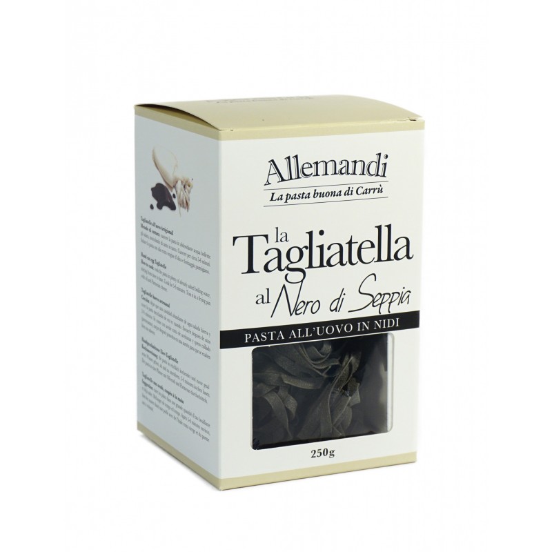 Le Tagliatelle all’Uovo al Nero di Seppia sono ideali per tutti i primi piatti a base di pesce. La nostra Pasta all’Uovo è prodotta con uova fresche e semola di prima qualità, esclusivamente trafilata al bronzo ed essiccata a basse temperature, sfruttando l’energia solare. I nidi vengono poi confezionati a mano, uno ad uno. Le Tagliatelle al Nero di Seppia, condite con vongole saltate in padella, seppioline oppure calamari, una spolverata di prezzemolo tritato e una grattata di scorza di limone non trattato vi faranno fare un figurone a tavola con parenti e amici.
