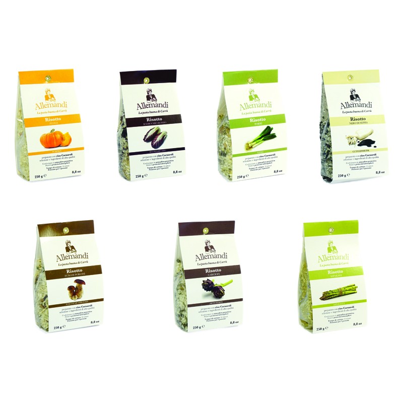 Risotti pronti sono facili e veloci da preparare, pur mantenendo l’alta qualità che contraddistingue tutti i nostri prodotti. Al riso Superfino Carnaroli di produzione esclusivamente italiana vengono aggiunti i migliori ingredienti naturali e le migliori verdure.