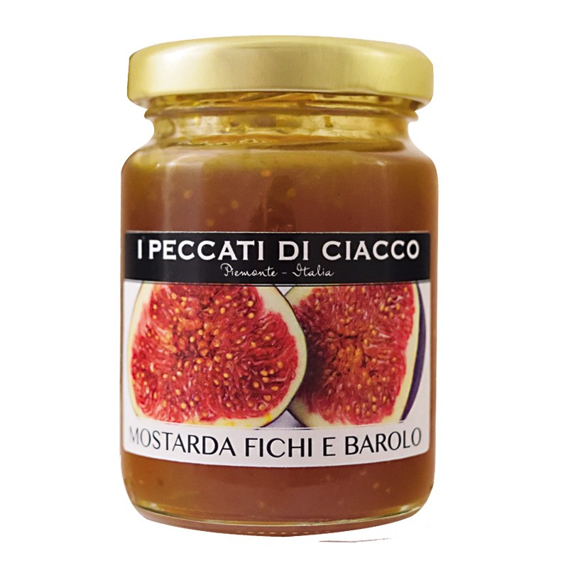 Una mostarda di fichi e Barolo ottima da assaporare con vari formaggi quali il Brie, il Parmigiano, il Pecorino fresco e altri formaggi di media stagionatura e erborinati.
