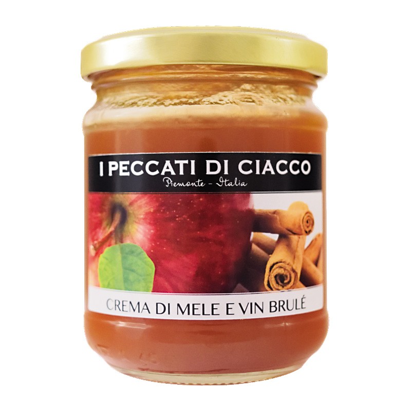Ingredienti: mele 70%, zucchero, vin brulé (vino rosso, chiodi di garofano, cannella), scorza di limone.